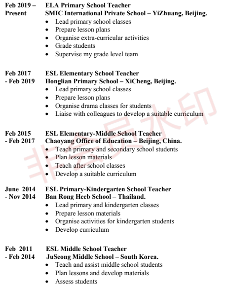 國(guó)籍: 美國(guó) 求職意向: 教師