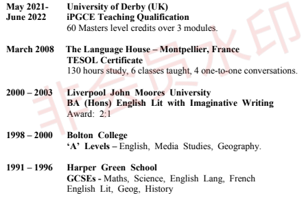 國(guó)籍: 英國(guó) 求職意向: 教師