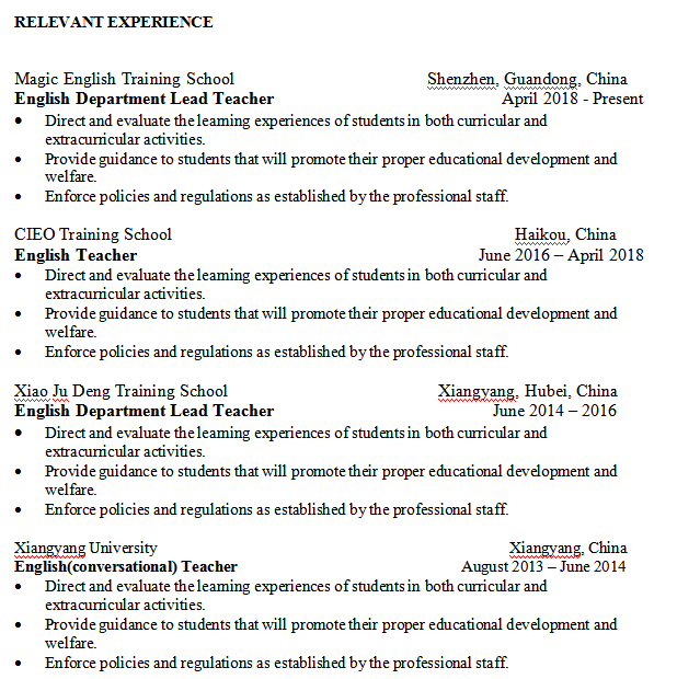 到崗: 越快越好 意向地點: 大學, 小學初中高中職位