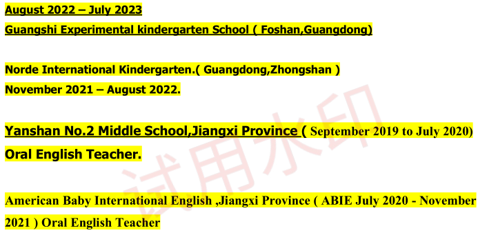 國籍: 加拿大 求職意向: 教師