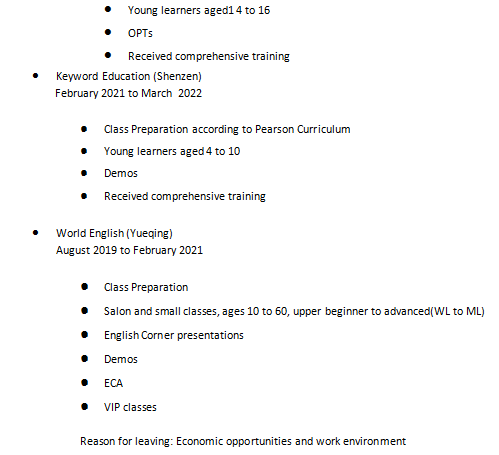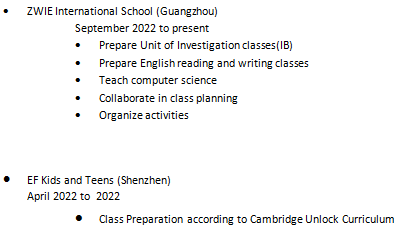 國(guó)籍: 加拿大 求職意向: 教師
