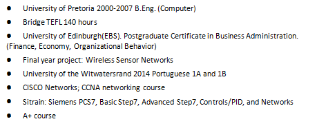 國(guó)籍: 南非 求職意向: 教師