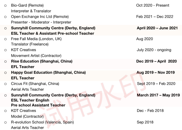 國籍: 英國 求職意向: 教師