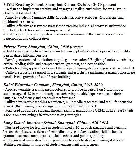 國(guó)籍: 美國(guó) 求職意向: 教師