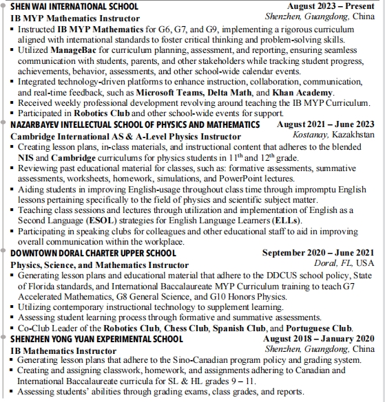 國(guó)籍: 美國(guó) 求職意向: 教師