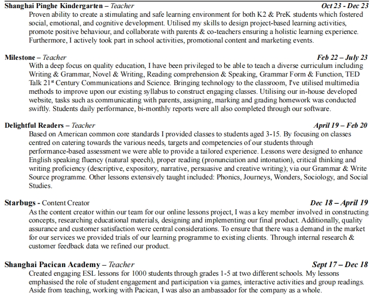 國(guó)籍: 美國(guó) 求職意向: 教師