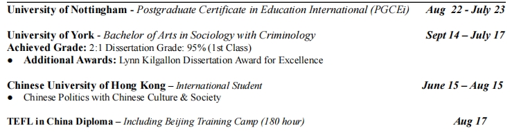 國(guó)籍: 澳大利亞 求職意向: 教師
