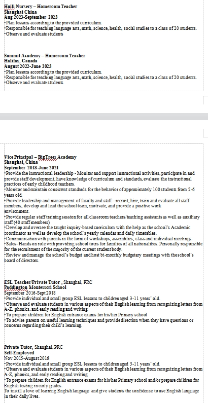 國(guó)籍: 澳大利亞 求職意向: 教師