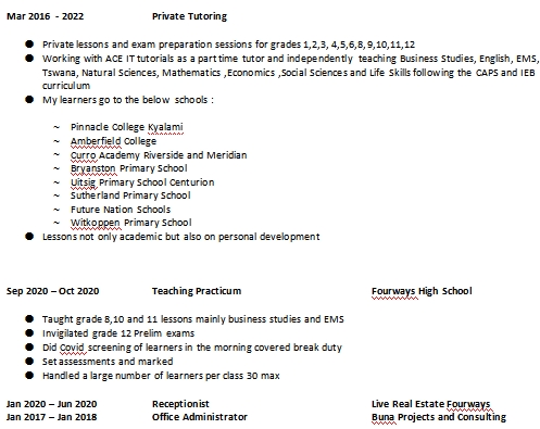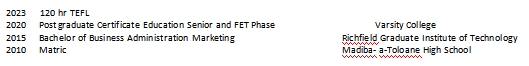 國(guó)籍: 南非 求職意向: 教師