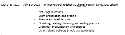 國(guó)籍: 加拿大 求職意向: 教師