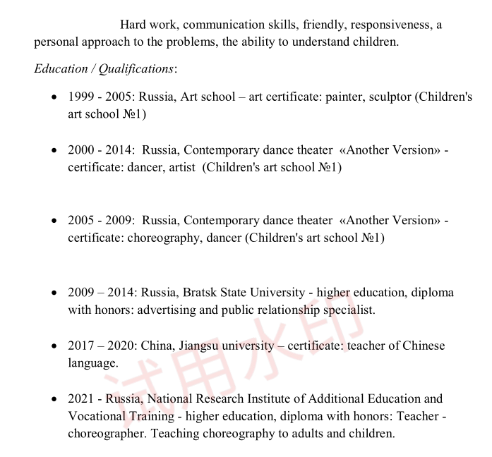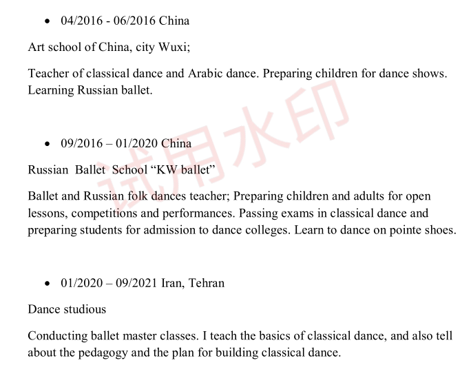可以教各種舞蹈, 瑜伽,拉丁, 民族, 爵士 ,現代等舞蹈, 也能教語言類教學,形象佳,舞蹈功底強,聯系客服索取全套資料 |