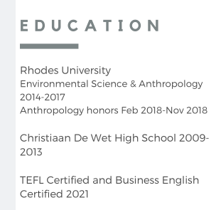 國(guó)籍: 南非 求職意向: 教師