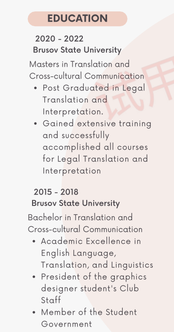 國籍: 俄羅斯 求職意向: 教師