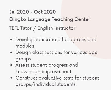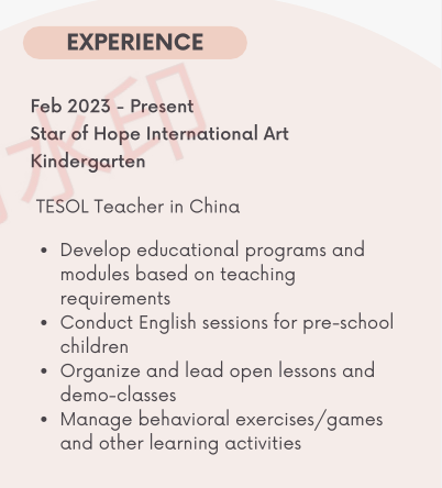 國籍: 美國 求職意向: 教師
