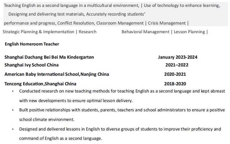 國籍: 未知 求職意向: 教師