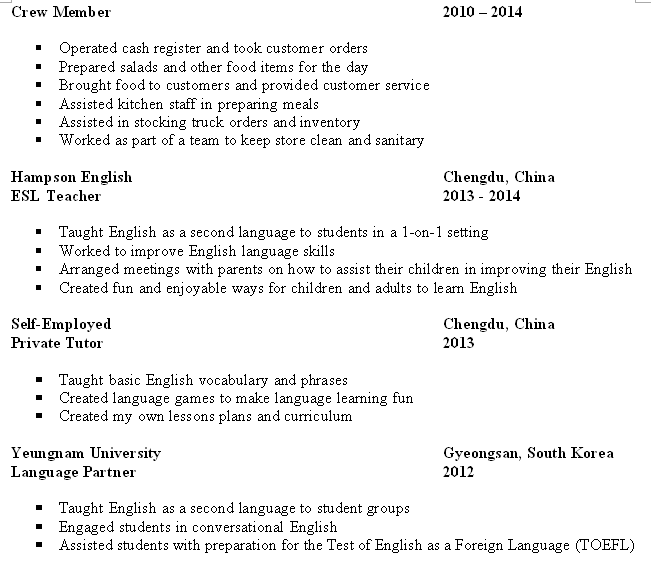 外教的工作經(jīng)歷