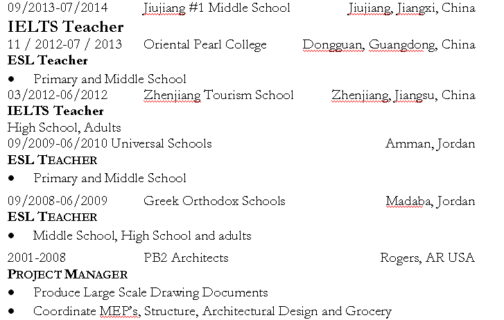 國(guó)籍: 美國(guó) 求職意向: 教師