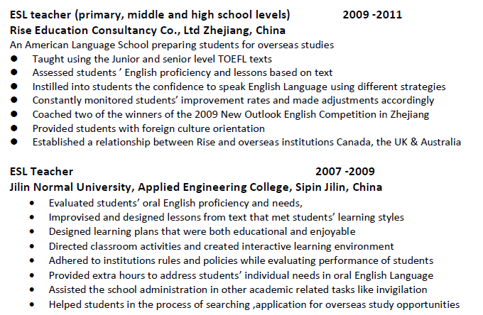 國籍: 美國 求職意向: 教師
