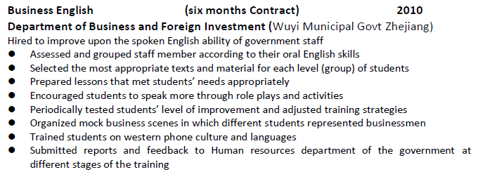 國籍: 新西蘭 求職意向: 教師