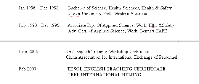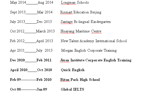 外教的工作經(jīng)歷