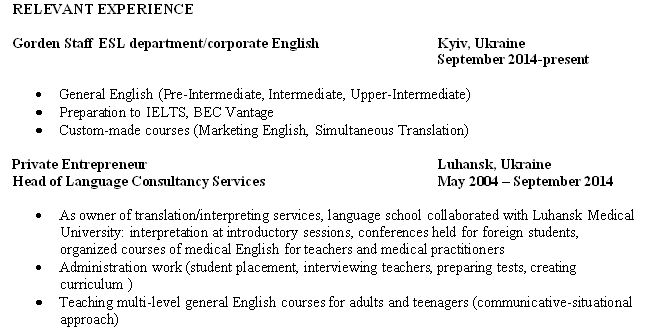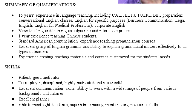外教的工作經(jīng)歷