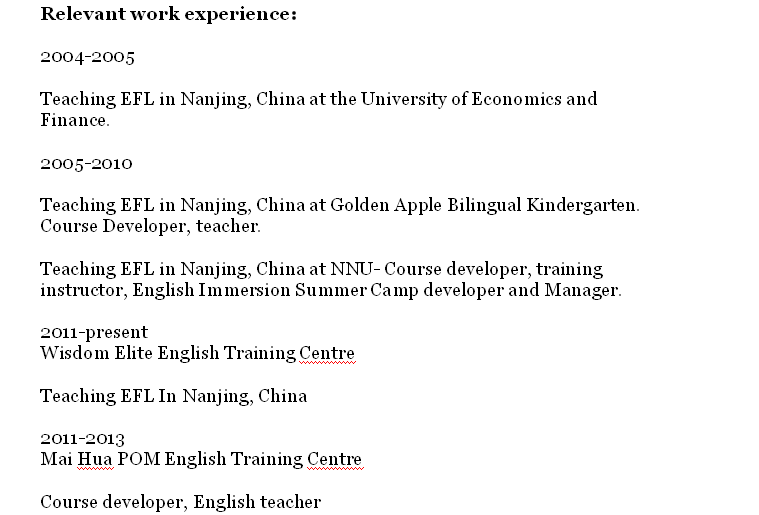 外教的工作經(jīng)歷