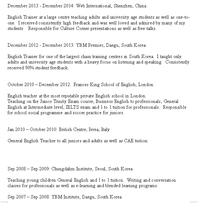 國籍: 新西蘭 求職意向: 教師