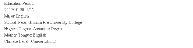 國(guó)籍: 新西蘭       求職意向: 教師