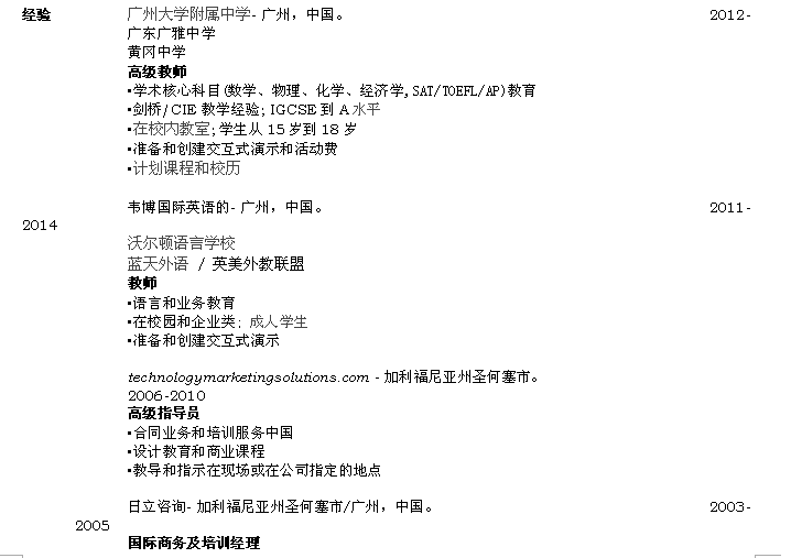 外教的工作經(jīng)歷