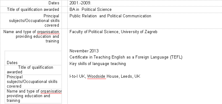 2012.-2014. Business owner Customer service, advertising, sale Sandra Sabic, Franje Fenca 5, Donja Zelina 10382, Croatia January 2012. Member of voting comitee at Croatian European Union membership referendum 2012 Identification of attending citizens, counting tallies
