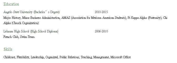 國籍: 美國 求職意向: 教師