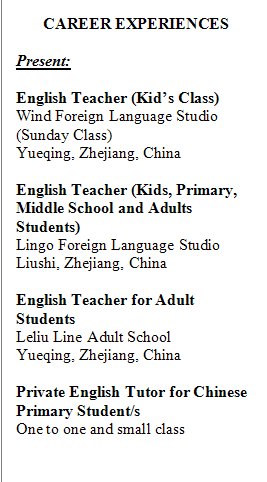 國(guó)籍: 美國(guó)       求職意向: 教師