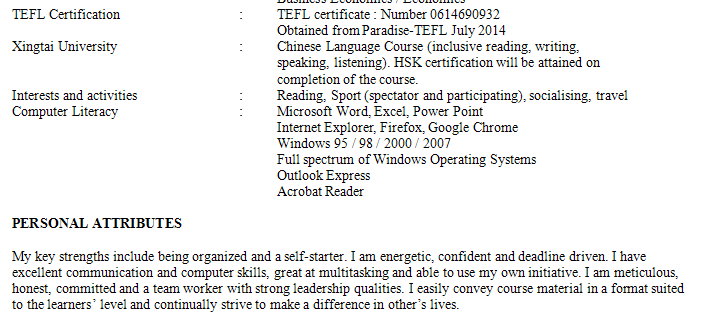 國籍: 新西蘭       求職意向: 教師