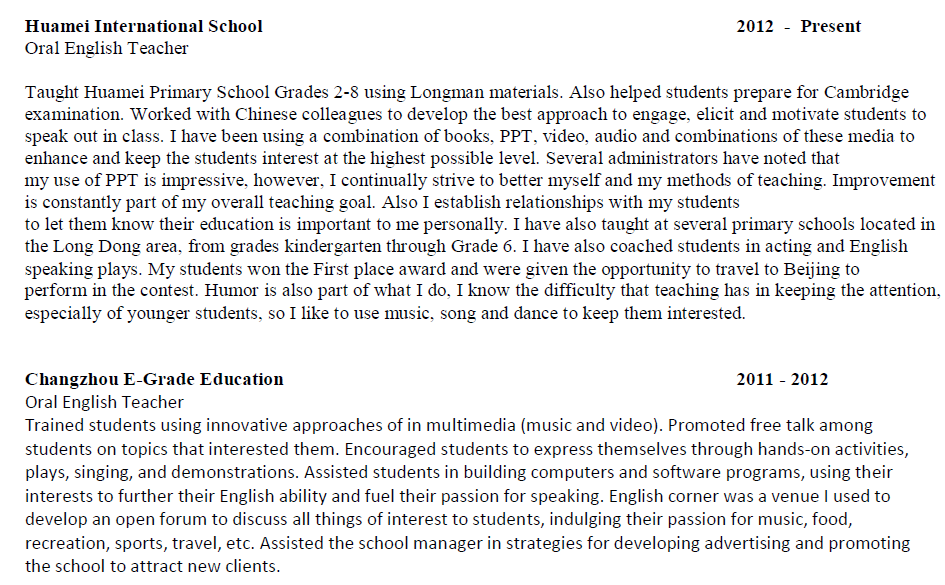 國(guó)籍: 美國(guó) 求職意向: 教師