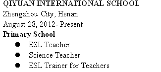 國籍: 美國       求職意向: 教師
