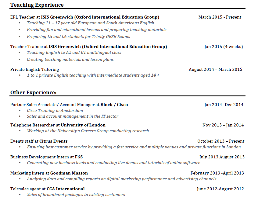 外教的工作經(jīng)歷