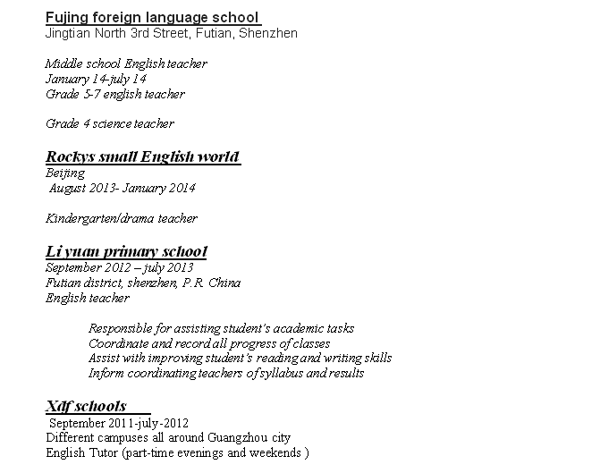 外教的工作經(jīng)歷