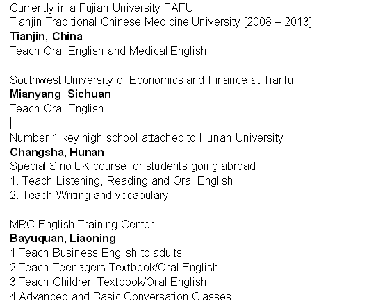 國(guó)籍: 美國(guó)       求職意向: 教師