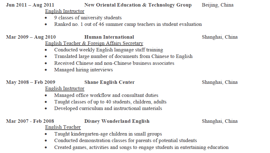 國籍: 美國 求職意向: 教師