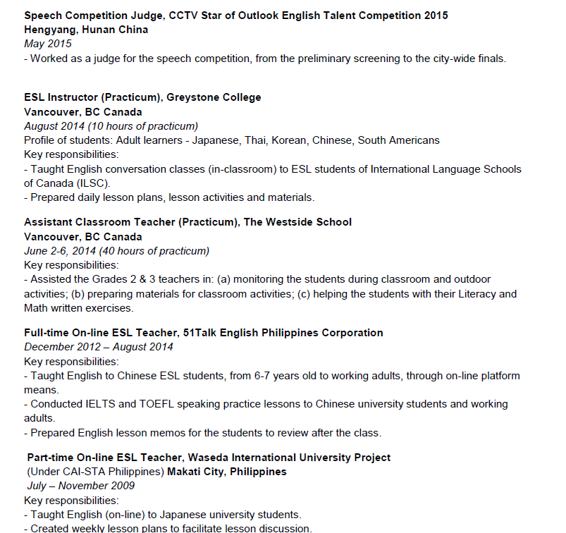 國籍: 美國 求職意向: 教師