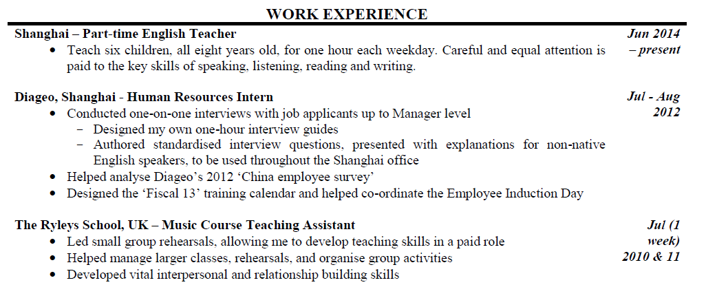 外教的工作經(jīng)歷