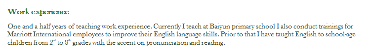 國籍: 美國 求職意向: 教師
