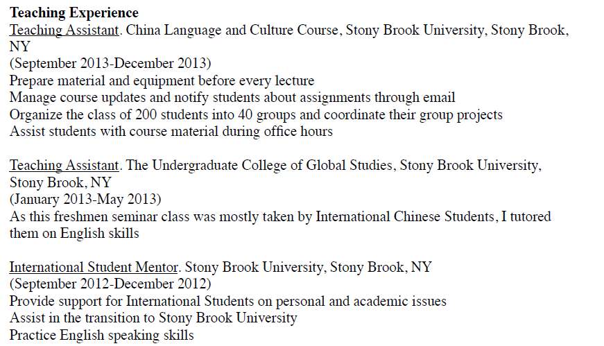 外教的工作經(jīng)歷