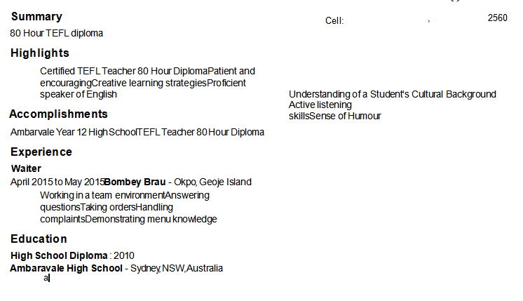 國籍: 南非 求職意向: 教師