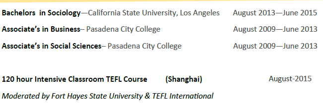 外教有本科,有TESOL. 有簽證,只能在上海工作。 |