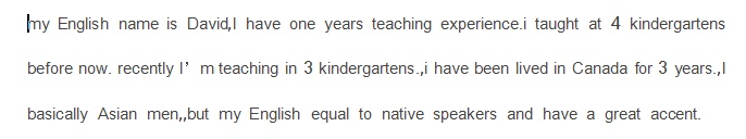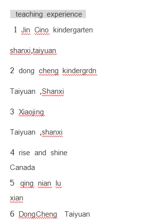 外教的口音地道,現(xiàn)在山西太原,可以盡快到崗,最希望在遼寧沈陽(yáng)工作。 |