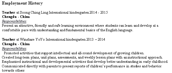 國籍: 美國 求職意向: 教師