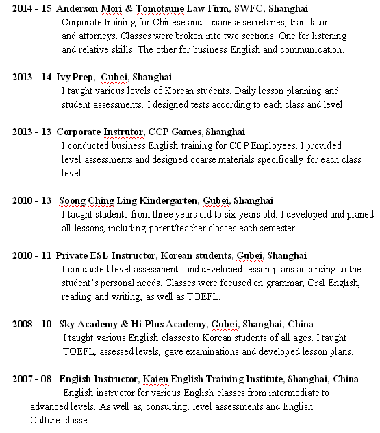 國(guó)籍: 美國(guó) 求職意向: 教師