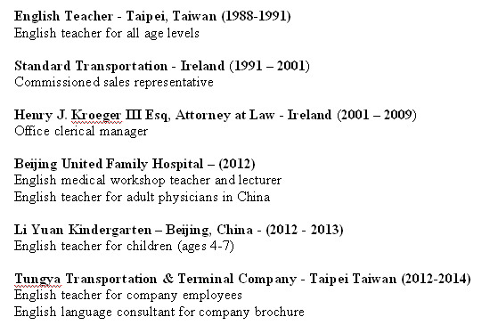 國籍: 美國 求職意向: 教師