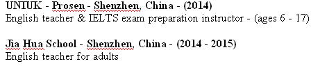 國籍: 新西蘭 求職意向: 教師